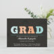 Um fundo de pássaro escuro e letras ocas fundas em turquiose e laranja fazem um convite único para a graduação.