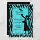 Comece o seu evento com o nosso Formando de tendências e na moda colocado num convite para a graduação do padrão de impressão em turquesa e zebra preta, com uma silhueta preta de um formando a atirar o boné de formatura para o ar. Convite perfeito para a formatura de um segundo grau ou formandos. Preencha suas informações e está tudo pronto. Visite-nos um www.celebrateitgraduations para uma grande seleção de convites para formatura em 2011 . ©COcoa Studio