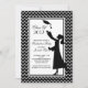 Comece seu evento bem com nossa trendy & na moda Formando colocada em um convite de festa de formatura em ziguezague preto e branco apresentando uma silhueta preta de um formando jogando seu boné de formatura no ar. Convite perfeito para a formatura de um segundo grau ou formandos. Preencha suas informações e está tudo pronto. Visite-nos um site www.celebrateitgraduations para uma grande seleção de convites para formatura em 2012.