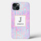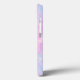 Uma capa de telefone com um padrão de fundo abstrato. As aquarelas roxas e azuis cor-de-rosa formam este design artístico que apresenta formas retangulares verticais sobre um fundo malhado. Um quadrado em camadas acima com uma borda falsa de folha de ouro, seu dentro de texto personalizado.