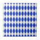 Se você é um amante de designs geométricos, este lindo padrão de moradias azuis e brancas com pequenos brilhos prateados redondos é perfeito para você, similar ao trajar colorido e característico do harlequin.