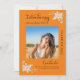 Um convite moderno e minimalista à graduação em laranja para a classe de 2022. Estes anúncios únicos e elegantes são maravilhosos para esta ocasião. Os toques florais cor-de-rosa macio são sutis para deixar a radiância da sua fotografia brilhar.