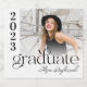 Este rótulo de vinho espumante personalizado é a adição perfeita para um presente para o seu graduado. O design moderno e elegante apresenta uma foto do graduado, seu nome e ano de graduação. Este rótulo é perfeito para combinar com um presente ou para exibir em um bar para exibição na sua celebração.