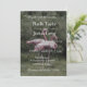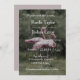 Convite de casamento ao ar livre com um par de flamingos cor-de-rosa.