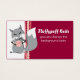 Raposa branca, adorável, com bola de fio e cartões de visitas de tricô ou etiquetas de presente "feitas à mão com amor" ou etiquetas penduradas para tricô ou artesanatos de fios. A raposa contém uma bola de fio rosada e inchada e tem uma agulha de tricô com ponta de cinza