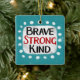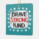 "Brave Strong Kind" é uma citação inspiracional ou motivacional bonitinha com uma forma de sotaque branca cercada por pontos brancos texturizados.