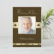 Este 75º convite de aniversário em castanho com sotaques de ouro mostra sua foto no centro, junto com um lugar para você colocar o nome da honestidade de aniversário abaixo da foto. Uma maneira muito elegante e pessoal de convidar convidados para uma 75ª festa de aniversário. Direitos autorais