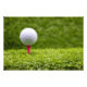 A bola de golfe está sobre a lágrima cor-de-rosa sobre fundo de grama verde Foto Impressão
