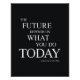 "O futuro depende do que você faz hoje" - poster de citações motivacionais inspiradoras, em um design tipográfico na moda de cores pretas e esbranquiçadas, perfeito para seu escritório, seu ginásio ou sua casa. Esta citação inspiradora é de Mahatma Gandhi. Dica: -Você pode mudar a cor de fundo para qualquer cor escura que quiser. Primeiro, clique no botão 'Personalizar Ti' para revelar todas as ferramentas de design. -Exclua o arquivo de imagem de fundo preto, clique no botão 'Editar', clique na opção 'Fundo..' e escolha sua cor!