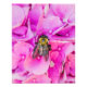 Uma abelha grande repousa sobre uma flor rosa de hydrangea.