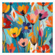Este abstrato floral de trabalho de arte impressionante se rompe com cores vibrantes e pinceladas arrojadas. A composição lúdica apresenta uma variedade de flores coloridas, criando um senso de alegria e energia. Perfeito por adicionar um toque de arte moderna à sua decoração doméstica.