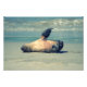 Um filhote de foca giro na praia arenosa dando a todos uma onda. A imagem foi tirada na ilha de Kangaroo, Austrália; isto foi antes dos incêndios florestais atingirem a ilha.