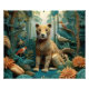 Imagem gerada por IA de uma paisagem de fios com plantas, pássaros e uma onça.