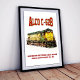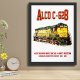 Locomotiva Vintage Alco C- 628 High-Nose Diesel com cores amarelas e verdes. Locomotive Company Century 628 Locomotive para Chicago e North Western de comboios de mercadorias. Trabalho de arte detalhado enfatizando suas cores vibrantes e o apelo rústico, colocado contra um pano de fundo texturizado. Captura a nostalgia e a design industrial dos trens clássicos.