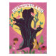 Alemanha vintage poster de viagens paisagístico, fofo desenho animado floresta alemã em uma ilustração.