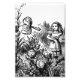 Falar de flores impede Alice de falar enquanto ela caminha pelo caminho do jardim em Wonderland. Ilustração de safra no dominio público.