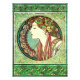 Alphonse Mucha Laurel impressão. Poster litógrafo do período art nouveau. O pintor checo Alphonse Mucha criou alguns dos mais amados anúncios e posters do período art nouveau. Laurel é uma bela alegoria de primavera, apresentando uma linda jovem em perfil com flores e louros em seu cabelo. O retrato é emoldurado por um intrincado padrão de folhas de encravamento. Um belo presente para fãs de Mucha, art nouveau e posters de arte vintage.