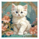 Foto Impressão com um gato branco no estilo de Alphonse Mucha! Este gatinho liso e de olhos azuis posou com flores cor-de-rosa e cobertores azuis. Um presente fabuloso para amantes de gatos e colecionadores de Art Nouveau!