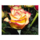 Uma única rosa amarela com borda vermelha. Nunca recebi nem vi essa combinação de cores em um boquete antes e tive que capturar a beleza antes que ela se retirasse.