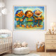 Uma ilustração encantadora em estilo de livro de histórias, repleta de calor, risadas e magia suave, perfeita para quartos infantis, berçários e espaços familiares aconchegantes.
