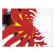 Um design de abstrato de arte de uma criatura mítica que lembra um anêmono marinho, em vermelho, amarelo, branco e ouro.