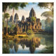 Imaginem uma cena mesmerizante de Angkor Wat, o antigo complexo templo Khmer, ancorado no coração de uma floresta exuberante. As cores vibrantes da pintura impressionista trazem vida aos arredores, com a filtragem da luz do sol através da folhagem densa e a projeção de um ouro quente na intrincada arquitetura do templo. A floresta está repleta de flora exótica, e os sons das aves que picam e das folhas que caem criam uma atmosfera serena. A pintura captura o fascínio místico de Angkor Wat, transportando-o para uma era passada de grandeza e espiritualidade.