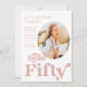 "Olá, 50" Convite de aniversário com texto de foto e rosa claro.