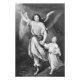 pintura de vintage ao estilo renascentista a preto e branco de um anjo da guarda que segura as mãos e caminha com uma criança. anjo alto e atlético com asas grandes está gestando e mostrando o caminho enquanto segura a mão de uma criança que está olhando para o anjo e caminhando com ele. uma criança caminha junto com um anjo da guarda enquanto o anjo segura a mão da criança e mostra o caminho para frente.pintado estilo renascentista, um anjo da guarda e uma criança com um vestido longo e fluido caminhando juntos.