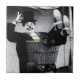 Foto engraçada de um palhaço vestindo um chapéu de cima. Tudo menos o nariz vermelho e a camisa verde é preto e branco.
