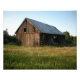 Um celeiro de madeira perto do anoitecer no meio de um campo de pastagem
