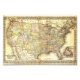 This antique-style United States map illustration features a classic aged parchment look with ornate floral borders and detailed geographic markings. Soft earth tones, historic cartography elements, and a bold red route line create a timeless exploration aesthetic inspired by old-world maps. Designed for history lovers, travelers, and fans of vintage Americana, this artwork captures the spirit of discovery, nostalgia, and classic map design in an elegant and visually rich style.