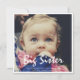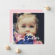 Que bom que esperamos o cartão de anúncio de gravidez fotográfica da Irmã Grande com rosa no lado de trás.