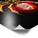 Aranha mecânica, com pá-pá de ouro, engrenagens de latão e uma lâmpada de vidro vermelha sobre fundo preto. Estilo Steampunk.