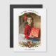 Este elegante e clássico design apresenta um modelo único de fotografia em arco esculpido destacado por um buquê lindo de flores vermelhas, verdes e douradas de inverno com dois campos de texto.
