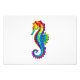 Articulação artificial, brilhante, arco-íris, cavalo de mar poligonal sobre fundo branco. Tatuagem brilhante.