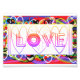 Um pequeno impressão de fotos personalizado com uma série de corações coloridos do arco-íris.