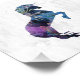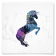 Uma silhueta de cavalo de criação sobreposta com um belo olhar "pintado" feito em abstrato blues e púrpuras, contra um fundo de grãos de madeira branca e curada de forma rústica.