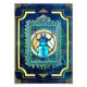 Um aqua iridescente e um besouro do cobalto apresentados num quadro de ornamentado contra um fundo tribal de símbolo sol/lua vibrante.
