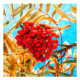 Aglomerado vermelho de amoras contra as folhas amarelas da árvore-ruga e o céu azul. Época do outono. Fotografia texturizada e estilizada.