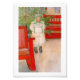 Menina bonita em um casaco branco peludo, chapéu e muff. Em frente a uma árvore de Natal com uma expressão solene no rosto dela. Imagem de feriado do artista sueco Carl Larsson.