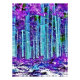 Um abstrato vibrante de árvores azuis, folhas roxas e mato.