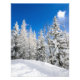 Foto impressão de neve nas árvores sob um céu azul em uma área de estância de esqui no inverno em um dia ensolarado e claro de inverno.