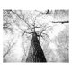 Olhando na vertical, em silhueta, as árvores brancas e pretas sem folhas em um dia encoberto.