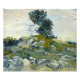 As Rochas. Vincent van Gogh. Paisagem em tons verdes-azuis frios. Há pedras no primeiro plano. No meio há um monte com uma árvore e pedras. O céu está nublado. Reprodução de famosas imagens de arte no dominio público.