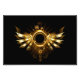 Asas mecânicas brilhantes, com engrenagens e faixa redonda de latão. Steampunk