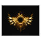 Asas mecânicas brilhantes, com engrenagens e faixa redonda de latão. Steampunk