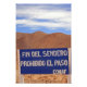 Pintados geoglifos, no Deserto de Atacama, perto de Iquique, Chile norte, e um sinal de "fim da estrada" da CONAF (Corporação Nacional Forestal do Chile)