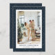 Cartões de Natal simples e azuis, com queda de neve em um fundo azul escuro. Personalize facilmente este cartão de Natal com fotos moderno com a sua imagem favorita e um nome de família.