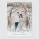 Este obrigado elegante do casamento você cartão magnético caracteriza sua própria foto pessoal do casamento com caligrafia azul romântica do roteiro e um abstrato de harmonização pontilhado para trás.
