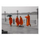 Foto B&W Monges budistas tailandeses caminhando Impress